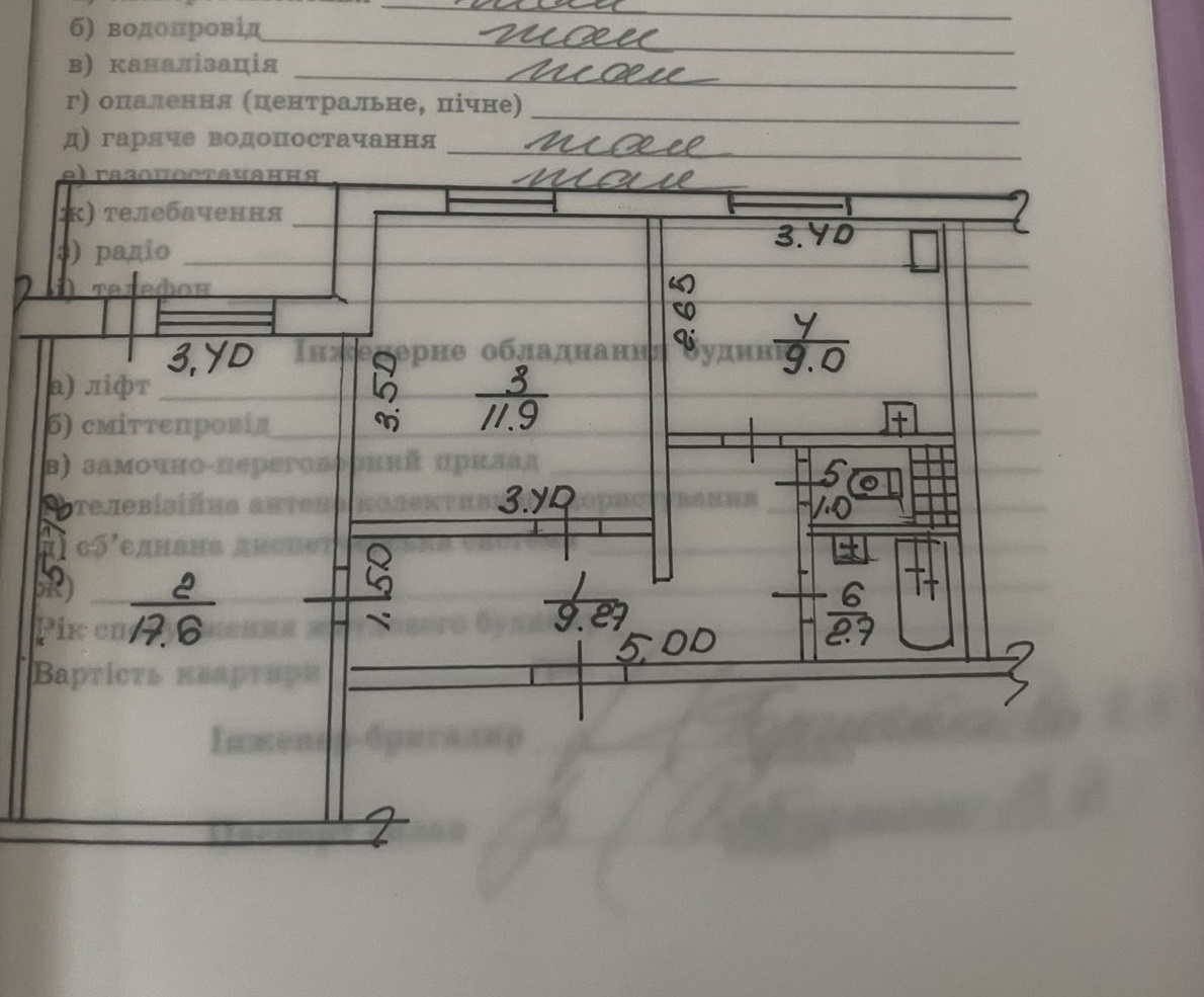 Площа: загальна 51,5 м.кв., житлова 29,5 м.кв., кухня 9 м.кв.