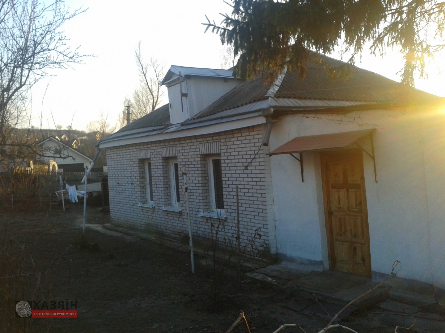 Площа 60 м.кв., стіни – дерев’яні обкладені цеглою. Нормальний стан. Передпокій-кухня, 2 кімнати. Окремий вхід, свій двір. Опалення – газовий котел, електрика. Дах шиферний, перекривалася 4 роки тому. Ділянка 16 соток, приватизований, держ. Акт, кадастровий номер. У дворі такі споруди – цегляний…